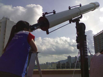 另外,香港天文學(xué)會(huì)也在屯門(mén)一間小學(xué),擺放有濾光設(shè)備的望遠(yuǎn)鏡,供市民觀看日偏食,預(yù)料會(huì)有大約1000人觀看。