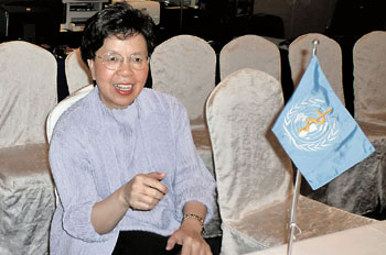 中新網(wǎng)9月23日電 在香港出席世衛(wèi)西太平洋區(qū)域會(huì)議的世衛(wèi)總干事陳馮富珍接受香港《明報(bào)》訪問時(shí)表示,在世衛(wèi)工作了33個(gè)月,任期剛好過了一半,工作雖然辛苦但很投入。記者笑問她會(huì)不會(huì)連任,她說按世衛(wèi)章程可以連任兩屆,甚至有成員國(guó)打趣說:“世衛(wèi)可以改例,讓她當(dāng)夠三屆總干事!