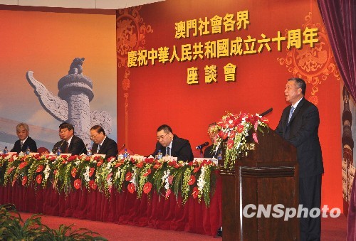 何厚鏵在致辭時(shí)表示,在國(guó)家六十華誕即將到來(lái)之際,澳門回歸祖國(guó)亦快將十周年!耙粐(guó)兩制”方針和祖國(guó)的繁榮富強(qiáng),是保持澳門長(zhǎng)期繁榮穩(wěn)定的根本保證。
