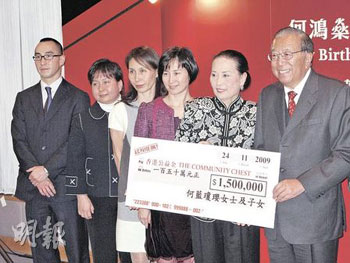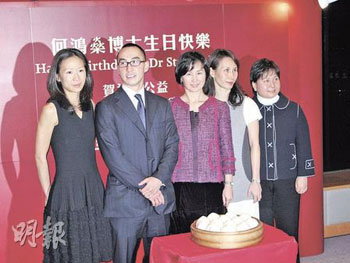四太大女何超盈手持寫上“Happy Birthday 掂呀!”的巨型生日卡賀老父,四太則用手做出心形手勢表示送個心給賭王。二太藍瓊纓則率領(lǐng)三女一子何超瓊、何超鳳、何超蕸及何猷龍出席“賀禮捐公益”活動,代表賭王將一張150萬元的支票捐贈公益金,并透露賭王進展良好,但仍未可出院,要在醫(yī)院度生辰。