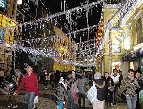 中新網(wǎng)12月18日電 據(jù)澳門日?qǐng)?bào)報(bào)道,澳門回歸十周年將至,社會(huì)團(tuán)體及特區(qū)政府機(jī)構(gòu)均有安排活動(dòng)慶祝。有游客表示,澳門各區(qū)掛滿回歸十周年的祝福橫額,全城洋溢歡樂氣氛。