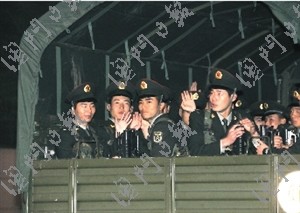由駐澳部隊指揮車、裝甲車、運輸車等二十多輛軍車組成的車隊,26日清晨5時許由珠;卣龓X營區(qū)出發(fā),取道南灣大道、橫琴大橋,經由蓮花大橋進入本澳。車隊在警車開路下到達凼仔軍營,駐澳部隊在軍營內舉行隆重的防務交接儀式,司令員王玉仁、政委許進林在凼仔營區(qū)迎送交替防務的兩個連隊。