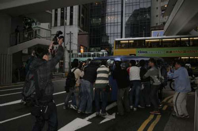 車輛在軍器廠街駛進警察總部的路程,原本只需短短一分鐘,因在場守候的記者剛見客貨車駛進,即蜂擁而上包圍客貨車拍照,結(jié)果車輛花了多達15分鐘,才能進入大廈內(nèi),場面一度混亂,期間警方出動十多名警員在馬路上維持秩序。陳的私人保鏢3日曾尾隨警方車輛駛離寓所,但4日總部現(xiàn)場所見,他們似已再無隨行。