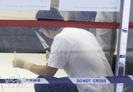 狂漢連襲3人后走出盛國樓,繼續(xù)手握染血軍刀走到20多米外的盛安樓,直闖地下嘉怡物業(yè)管理有限公司辦事處,向兩名管業(yè)主任施襲,當(dāng)中郭×基身中多刀浴血,梁×宗被砍傷手。據(jù)悉,當(dāng)時辦事處內(nèi)多名職員目睹斬人經(jīng)過,嚇得魂飛魄散,更有女職員痛哭。血洗辦事處后,疑兇似全無逃走之意,手執(zhí)血刀走出門外抽煙及念念有詞。
