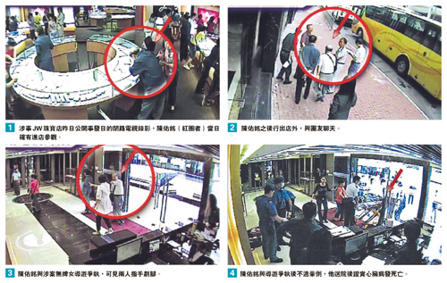 陳佑銘的遺孀、女兒及家屬經(jīng)過極力要求,昨日獲安排到肇事珠寶店翻看事發(fā)時(shí)的閉路電視。據(jù)悉,家屬逗留該店半小時(shí),當(dāng)看到職員及導(dǎo)游對陳佑銘的態(tài)度時(shí),家屬一度情緒激動,要由他人扶持下離開。