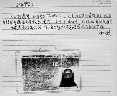 據(jù)報道,懷疑被人盜用導游證的鄭應麗4日接受電視臺訪問時表示,看過珠寶店當天的錄影片段,但未能認出誰是“黑工”導游;她稱,這次事件發(fā)生前,導游證已被盜用,冒牌導游更曾被人投訴,“北京那個被人投訴的團在(5月)9日、10日來港!编嵳f,相信導游證至少被盜用2次,“你帶了團,要拿回傭,永盛必須記錄,這些要問他們,才知道(她)帶了多少團?用了我的證件多少次?”她希望警方盡快查出真相。