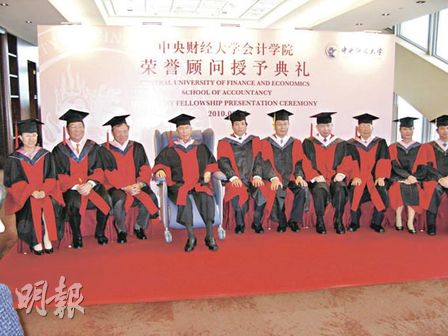中新網(wǎng)6月9日電 據(jù)香港明報(bào)報(bào)道,“賭王”何鴻燊久病復(fù)出,內(nèi)地中央財(cái)經(jīng)大學(xué)想頒會(huì)計(jì)學(xué)院榮譽(yù)顧問(wèn)榮銜,校方明白“賭王”的身體狀況,所以中央財(cái)經(jīng)大學(xué)副校長(zhǎng)到香港,在信德中心舉行頒授儀式,除“賭王”外,郭炳湘、李國(guó)寶、方潤(rùn)華同馬時(shí)亨都有份接受榮銜。