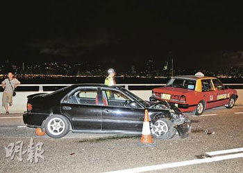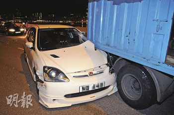逾20輛經(jīng)改裝的私家車,13日凌晨在被視為香港熱門非法賽車“跑道”之一的觀塘繞道,以160公里時(shí)速狂飆。警方接報(bào)趕至,并事先在繞道上截停5輛普通市民的車輛,作為堵截非法賽車的路障。未幾,10多輛跑車陸續(xù)高速馳駛沖過(guò)防線,另有最少3車實(shí)時(shí)掉頭逆線逃去,而5輛被充作“人肉路障”的汽車頓成犧牲品全被撞毀。有挨撞的士司機(jī)不滿警方做法,即場(chǎng)指斥“沒(méi)有理由要我們充當(dāng)‘人肉沙包’!”。