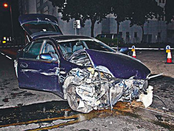 私家車突圍逃出后,至安全街時警車追至,私家車倒車連撞警車三次,在安全街加速疾馳,但失控撞毀路邊三個石欄繼而反彈路中,車頭盡毀無法開動。