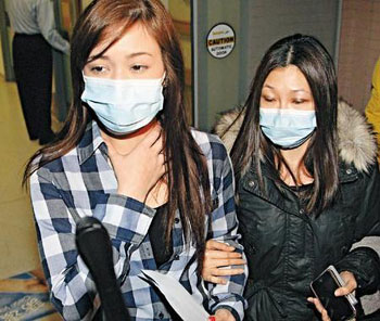 大批記者趕到律敦治醫(yī)院求證,果然見(jiàn)鄺敏慧在醫(yī)院驗(yàn)傷及治療,至晚上8時(shí)半,鄺戴上口罩由多名探員陪同返署錄取口供。鄺在醫(yī)院門(mén)外向記者展示手、腳上的傷勢(shì),并聲是被男朋友崔建邦打傷。