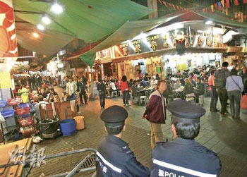 廟街商會主席陳錦榮10日說:“我們這么多人,天眼是死的,人是生的,更可靠!彼粲醺魃虘艏訌娛赝庾R,若再發(fā)生類似事件,應盡量在一分鐘內(nèi)分頭監(jiān)視附近“三無”大廈,即無保安員、閉路電視及閘門的大廈梯口,爭取“黃金一分鐘”,以便警方趕至抓犯。記者10日走訪港九多個被犯罪學家稱為高危的行人專用區(qū)及露天購物熱點,多個商戶紛紛響應號召。