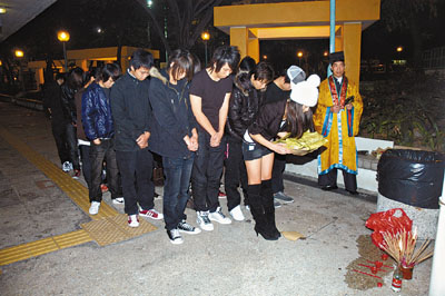 至吳遺體移送殮房時(shí),各人更脫下外套一字排開(kāi),組成“人肉屏障”阻擋記者鏡頭。至傍晚時(shí)分,該批青少年帶備香燭冥鏹,到介仔遇襲現(xiàn)場(chǎng)路祭,東九龍重案組及反黑組探員聞風(fēng)而至,逐一登記各人資料,并監(jiān)視路祭情況,眾青少年由一名儼如“大家姐”的少女率領(lǐng),拜祭一番后離去。