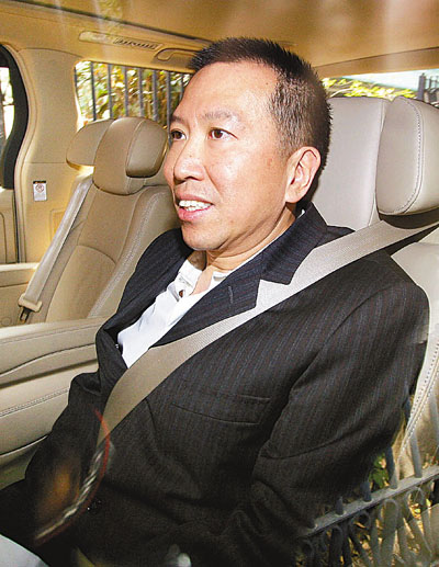 陳振聰18日穿上一套黑色西裝,下午2時(shí)30分在1名保鏢陪同下,乘坐其掛有兩地車牌的黑色豪華7人車,離開位于山頂歌賦山的豪宅,約10分鐘后便到達(dá)西區(qū)警署。警署門外早有逾20名記者守候,而警方也早有準(zhǔn)備,派出6、7名軍裝警員在警署停車場門口維持秩序。