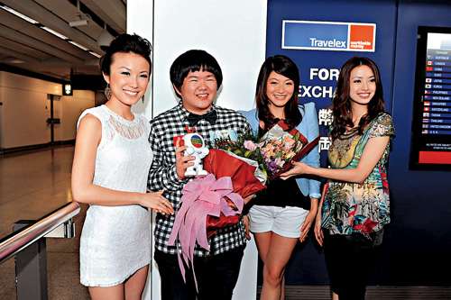 中新網(wǎng)5月6日電 憑《I Will Always Love You》一曲在國際爆紅,有“臺版蘇珊大嬸”之稱的小胖林育群,5日由臺灣來港展開五天宣傳之旅,無線特地派出應屆三位港姐劉倩婷、熊穎詩及李姿敏到機場獻花給他,令小胖高興得一直在冒汗。對于外形備受批評,但小胖坦言發(fā)型、肚腩及領(lǐng)結(jié)都是他的標志,所以無意減肥或整容,倒希望眼睛可以大一點,因眼睛小戴隱形眼鏡有難度。