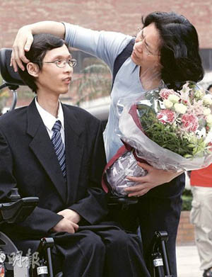 中新網(wǎng)5月9日電 有“港版霍金”之稱的劉曉鋒大學(xué)畢業(yè)后踏足社會(huì),準(zhǔn)備了他首項(xiàng)研究的成果作母親節(jié)禮物,報(bào)答媽媽的辛勞,他說(shuō)﹕“沒(méi)有她照顧我,好多事都做不到!辈环謺円拐疹檿凿h26個(gè)寒暑的劉媽媽,卻從未視之為“辛苦事”。