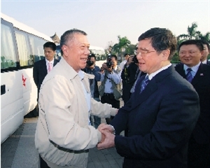 深圳副市長卓欽銳歡迎何厚鏵一行。(圖片來源:澳門日報(bào))