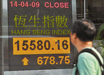 中新網(wǎng)4月15日電 據(jù)香港《文匯報》報道,外圍在復(fù)活節(jié)長假期間,股市持續(xù)向好,令港股14日要追回有關(guān)升幅,恒指高開401點(diǎn)后追貨買盤支撐大市,一眾當(dāng)炒股份向上,全日收報15580點(diǎn),升678.7點(diǎn),升幅達(dá)4.5%,是今年1月7日港股跌穿15000點(diǎn)后,4個月以來首次重上15000點(diǎn)收市,且成交續(xù)增至754.21億元。
