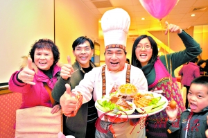 寫著大大福字的紅色氣球,喜慶的紅色桌布、紅色春聯(lián),就連掌勺年夜飯的大廚衣領(lǐng)、帽子、袖子上也都點綴著喜慶的中國紅……在兩岸“大三通”后的第一個除夕夜,首批作為普通游客前往臺灣地區(qū)過年的廣州市民,昨晚與臺灣同胞一起在臺北的傳統(tǒng)餐廳共進年夜飯。在具有臺灣地區(qū)傳統(tǒng)特色的“圍爐”上,不僅臺北餐廳的大廚親自給廣州客人上菜,就連當(dāng)?shù)氐呐_灣同胞也熱情地向廣州小朋友送上利市。