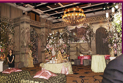 16日的喜宴共分兩場,下午是邀請李家誠兩公婆已有小孩子的朋友及其大女的同學(xué),晚上正式宴請親友及公司同事。16日下午一早有近百傳媒在酒店門外等候采訪,由于天氣酷熱,李家很細(xì)心放置冰箱給傳媒享用冰水,之后由公關(guān)安排傳媒拍攝位于四樓的飲宴場地,場內(nèi)由瑞士及意大利設(shè)計(jì)師Silvio Berge負(fù)責(zé),設(shè)計(jì)成一個(gè)Secret Garden歐洲式花園布置。