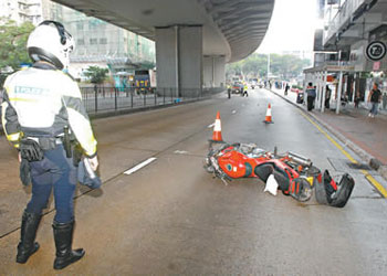 肇事電單車(chē)沖前約40米才停下,鐵騎士也受重傷。