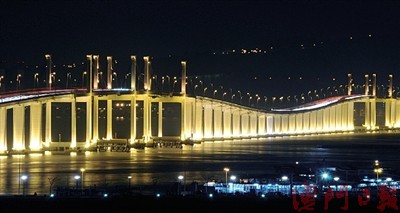 中新網(wǎng)3月16日電 據(jù)澳門日?qǐng)?bào)報(bào)道,澳門三條跨海大橋照明系統(tǒng)去年底在臺(tái)風(fēng)中受損及被“水老鼠”偷竊,有關(guān)單位耗資1800多萬(wàn)元進(jìn)行大規(guī)模維修。有關(guān)工程已全部完成,入夜后澳氹間海面再現(xiàn)“長(zhǎng)虹”。