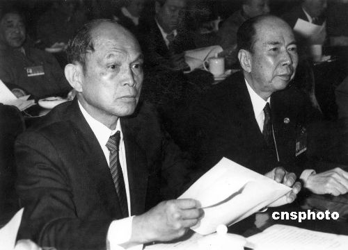 圖為一九八八年全國(guó)人大代表霍英東(左)、馬萬(wàn)祺(右)出席七屆全國(guó)人大第一次會(huì)議籌備會(huì)議。