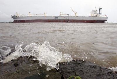 輪船已于今天抵達(dá)美國路易斯安那州的海域,先進(jìn)行試用。在得到海岸警衛(wèi)隊(duì)的認(rèn)可后,這艘世界最大的浮油回收船將駛?cè)肽鞲鐬陈┯偷攸c(diǎn)。