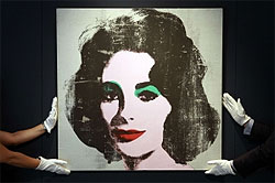那幅畫是安迪•沃霍爾1963年的作品,那一年,伊麗莎白泰勒成為第一個片酬突破百萬美元的女星,畫作被私人收藏,20年來都沒有公開展示過。現(xiàn)在,它在倫敦以676萬英鎊、相當(dāng)于一千一十萬美元拍賣。