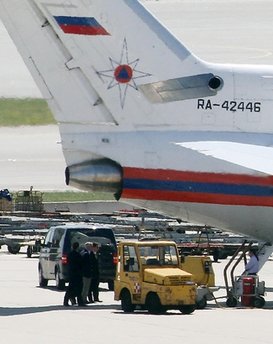 現(xiàn)場記者指出,該架客機(jī)停放在一架編號(hào)為RA42446的俄羅斯客機(jī)旁邊,兩架客機(jī)靠得很近,記者無法看見客機(jī)艙門的情況。