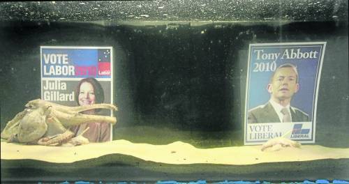中新網(wǎng)7月17日電 據(jù)外電17日?qǐng)?bào)道,隨著“章魚哥”保羅風(fēng)靡全球,各國(guó)都掀起了一股用章魚預(yù)測(cè)重大事件的風(fēng)潮,除了俄羅斯用“章魚哥”預(yù)測(cè)俄下屆總統(tǒng)人選之外,澳大利亞也推出它們本土的“神奇”章魚,預(yù)測(cè)澳大利亞女總理吉拉德的工黨將贏得8月大選。