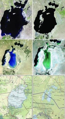 位于烏茲別克斯坦和哈薩克斯坦之間的咸海,曾是世界第四大內(nèi)陸湖,里面生活著至少20種魚類。20世紀(jì)60年代初期,前蘇聯(lián)政府建造了45座堤壩和30000多公里長(zhǎng)的河渠,支持在烏茲別克斯坦沙漠平原建造棉花工業(yè)區(qū)。在隨后三十年間,咸海縮小了五分之二,周圍的漁村也都變成沙漠荒地。由于水中含鹽量過(guò)高,魚類全部滅絕。當(dāng)?shù)仫嬘盟⿷?yīng)陷入危險(xiǎn)水平,棉花田使用的殺蟲劑也滲入地下水中。每年高達(dá)7500萬(wàn)噸的有毒浮沉和鹽末被吹到中亞各地。由于哈薩克斯坦建造堤壩,咸海北部已經(jīng)開始恢復(fù),但南部依然處于環(huán)境惡化之中。