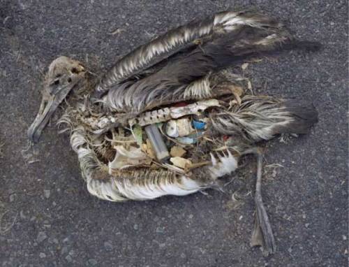 位于加州和夏威夷之間的某處可能是世界上最大的垃圾堆,塑料和各種碎片垃圾的面積相當(dāng)于一個(gè)半美國(guó)大,厚達(dá)30多米。這個(gè)垃圾區(qū)是北太平洋環(huán)流系統(tǒng)的產(chǎn)物,它將美國(guó)西海岸和亞洲東部的垃圾帶到北太平洋。這些塑料碎片的數(shù)量是浮游動(dòng)物的六倍,許多魚類和鳥類誤將它們當(dāng)成食物,塑料中的化學(xué)物質(zhì)也重新進(jìn)入食物鏈中。聯(lián)合國(guó)環(huán)境規(guī)劃署統(tǒng)計(jì),世界大洋每2.6平方公里含有4.6萬(wàn)片塑料,每年因此死亡的海鳥超過(guò)100萬(wàn)只,海洋哺乳動(dòng)物為10萬(wàn)只。