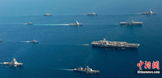 這次名為“不屈意志”的聯(lián)合軍演是從25日清晨開始的,美國海軍“喬治·華盛頓”號航空母艦、號稱“亞洲最大”的韓國“獨島”號運輸艦、“文武大王”號和“崔永”號韓國型驅(qū)逐艦、韓美兩國潛水艇等韓美艦艇當(dāng)天陸續(xù)離開停泊的釜山港和鎮(zhèn)海港,前往韓國以東的日本海會合。除20多艘艦艇外,美國最新型F-22“猛禽”戰(zhàn)斗機和韓國F-16、F-15K等200多架飛機參加了本次演習(xí),韓美投入的兵力達到8000多人。