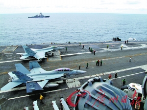 本報(bào)訊 據(jù)美國媒體8日晚從美軍航空母艦“喬治·華盛頓”號上發(fā)出的消息,目前該航母抵達(dá)越南峴港附近的南海海域。