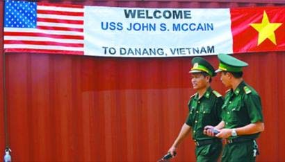 繼美軍核動(dòng)力航母“喬治·華盛頓”號(hào)8日抵達(dá)越南中部峴港附近的南海海域后,美軍“約翰·麥凱恩”號(hào)驅(qū)逐艦又于10日在越南峴港靠岸,準(zhǔn)備進(jìn)行軍事交流。此時(shí)正值南海問(wèn)題引發(fā)外交紛爭(zhēng)之際,美越間的頻繁互動(dòng)成為各方關(guān)注的焦點(diǎn)。