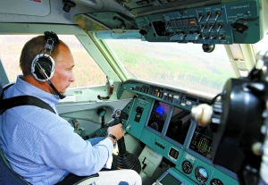10日,普京在視察莫斯科南部梁贊地區(qū)時(shí),親自登上一架別—200直升機(jī)參與滅火。俄羅斯電視臺(tái)畫面顯示,普京頭戴耳機(jī),坐在副駕駛座上,使用操縱鈕從河中取水,并噴灑在一片燃燒的森林上,成功撲滅了一處火點(diǎn)。