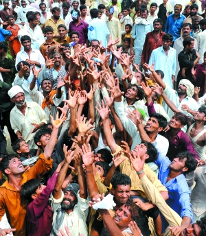 旁遮普地區(qū)議員拉格哈利說,糧食援助人員在給災(zāi)民分發(fā)糧食的時候,一些失望而饑餓的災(zāi)民甚至襲擊他們。