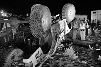 前晚約7時(shí)40分,位于洛杉磯東北約165公里沙漠地區(qū)的“加州200荒漠越野車比賽”開(kāi)始不久,位于前列位置的Prerunner四驅(qū)車駛到距起點(diǎn)約3.2公里的跳臺(tái)時(shí)出事。
