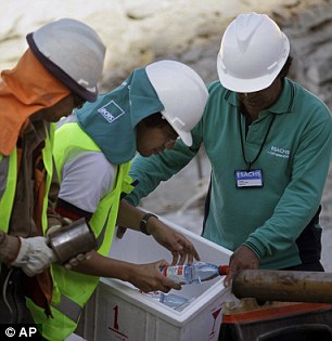 根據(jù)智利官方制定的救援方案,救援人員將在發(fā)生礦難的礦井上方打通一口直徑大約66厘米的逃生井,直通地下700米處,也就是受困礦工所在地方。然后,通過一個裝有滑輪的混凝土平臺將被困礦工逐一救出。然而由于礦井巖層堅固,且井內境況復雜,相關人員估計打通這條逃生通道需要數(shù)個月的時間。