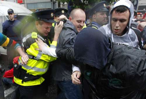 示威者包括反戰(zhàn)人士,他們不滿英國對北愛爾蘭的控制,以及布萊爾決定參與伊拉克戰(zhàn)爭。為了避免騷亂,都柏林市中心一些商店關(guān)門。警察封閉了鄰近幾條街道。