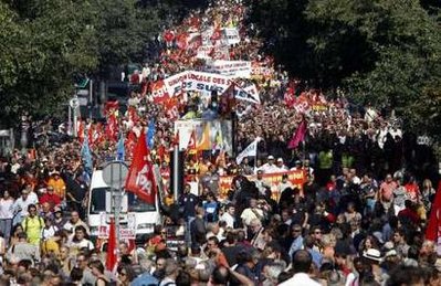 中新網(wǎng)9月24日電 法國工會23日發(fā)動一個(gè)月內(nèi)第二次全國大罷工,290萬人走上街頭,抗議政府打算推行的退休制度改革。