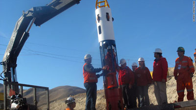 當(dāng)救援通道完全打通后,工作人員將把這種救生艙放入井下,救生艙大概有一人大小,可以將井下礦工一個接一個的運(yùn)送出洞。智利政府表示,如果進(jìn)展順利,他們可能將于11月初或者更早被救出。