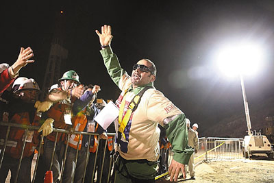 中新網(wǎng)10月14日電 綜合媒體報道,史上最長的礦井救援行動14日迎來最終勝利,智利救援人員用特制救生艙,把33名被困在近700米深地底達69日的礦工逐個運回地面。智利總統(tǒng)表示,這次艱巨救人行動對礦工與智利都是“真正的重生”。被救礦工心情各異,有人想第一時間知道自己變成什么模樣,也有人擔(dān)心逃生井在救援過程中坍塌。