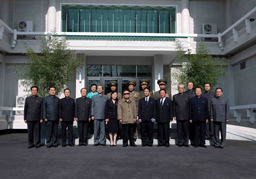 朝鮮勞動黨政治局委員金基南、崔泰福、金京姬等人陪同金正日參加考察。(宋偉鋼)
