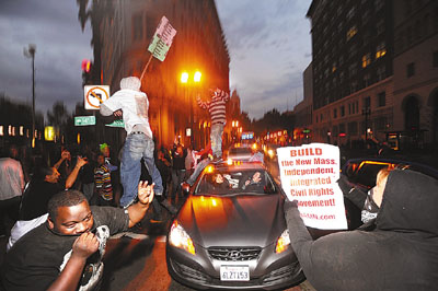 中新網(wǎng)11月7日電 據(jù)香港《文匯報(bào)》報(bào)道,美國(guó)加州奧克蘭一名白人警員去年元旦射殺一名手無(wú)寸鐵的黑人男子,隨后引發(fā)種族騷亂。涉案警員前日被判囚2年,死者家屬不滿刑罰過(guò)輕,約500人到市府外示威,高呼“沒(méi)公義,沒(méi)和平”,并與警察沖突,期間有人打破窗戶和跳上汽車,有警員更一度被搶去佩槍。警方加強(qiáng)戒備,防止再次爆發(fā)騷亂,沖突中最少有152人被捕。