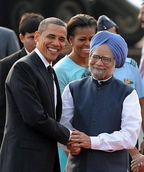 7日,奧巴馬抵達印度首都新德里,晚上在總理官邸與印度總理辛格進行了私人晚宴。