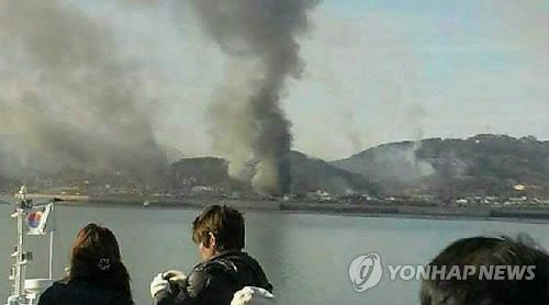 仁川海警延坪派出機構(gòu)代表金云韓(音)說,山上和整個村莊彌漫著煙霧。居民已經(jīng)回避到防空洞,不清楚是否有人在滅火。