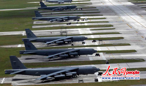 目前美海、空軍在關(guān)島部署了大量的先進武器裝備。美空軍在關(guān)島組建了一個“全球打擊特遣隊”,包括6架B-2隱形轟炸機、12 架KC-135空中加油機、48架F-15E戰(zhàn)斗機和1架“全球鷹”無人偵察機。同時,美國最先進的隱形戰(zhàn)斗機“猛禽”F-22還定期飛往關(guān)島駐訓,且未來將永久部署關(guān)島。