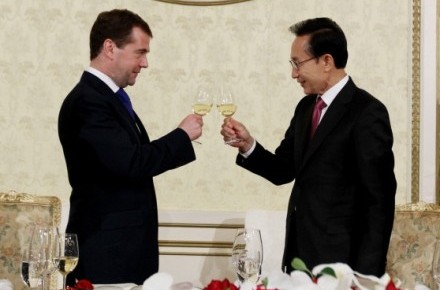 韓國(guó)對(duì)俄羅斯同樣興趣濃厚,11月10日在韓國(guó)總統(tǒng)府青瓦臺(tái)的共同記者會(huì)上,總統(tǒng)李明博也表示有意增加在俄羅斯投資。2009年,韓國(guó)對(duì)俄經(jīng)濟(jì)貢獻(xiàn)約13億美元,其中近5億美元為直接投資;今年初,韓國(guó)現(xiàn)代汽車(chē)位于圣彼得堡的組裝廠完工,這里每年可生產(chǎn)十萬(wàn)輛汽車(chē)。