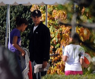 中新網(wǎng)11月29日電 據(jù)外電報道,當?shù)貢r間28日,不久前遭肘擊、嘴唇因此縫了12針的美國總統(tǒng)奧巴馬又重回籃球場打球,不過,這次他和兩個個子小了許多的對手——他的兩個女兒上場。相信這次,他不會再“破相”了。